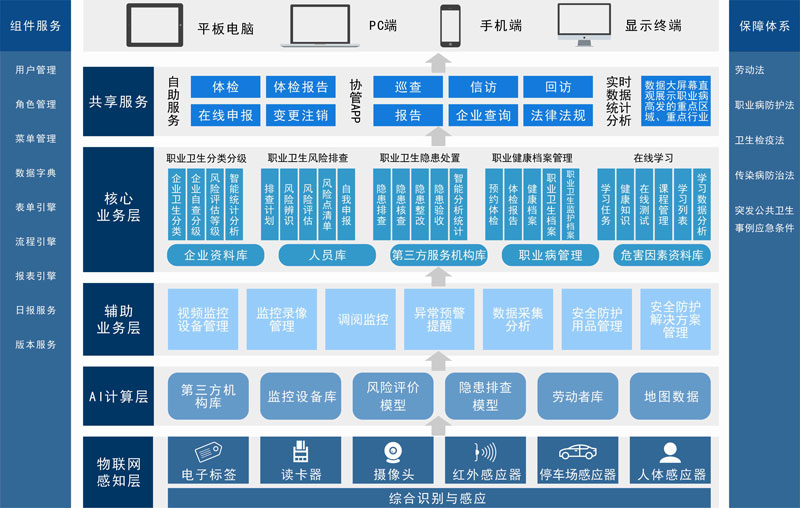 職業(yè)健康管理數字化平臺,是集監(jiān)管端、企業(yè)端、第三方服務端、個人端,四端于一體的職業(yè)健康智能監(jiān)管系統。平臺利用大數據、Al、移動互聯網、云計算等先進技術在多方參與者之間,架設數字化橋梁,切實解決職業(yè)健康檔案管理碎片化、職業(yè)衛(wèi)生監(jiān)管方式原始化等問題,構建職業(yè)病防治、控制、消除全流程工作的立體式管理,做到層層明責,各司其職,各負其責,落實職業(yè)健康管理工作,從源頭杜絕職業(yè)病危害事故的發(fā)生,促進生產經營可持續(xù)發(fā)展。